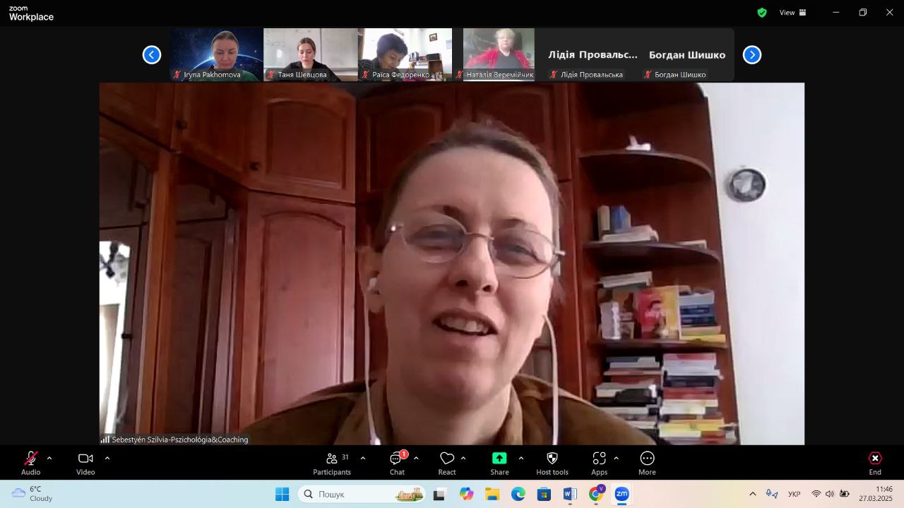 – «Коли слова та емоції застрягли. Робота з тілом у психотерапії» (Сільвія Себестьян (Угорщина) – сертифікований психолог у напрямі клінічної психології та психології здоров’я, тілесно-орієнтований психотерапевт, тренер із життя та бізнесу, практик систематичного сімейного сузір’я);